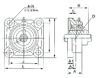 说明:一般安装在机械的侧壁上,结构简单、安装方便、是法兰型轴承座中应用最广泛的一种。