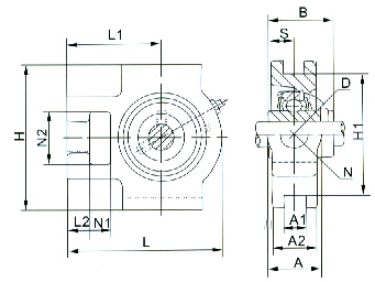 注:根据国标《GB/T7810》,该型座配以UEL200型轴承或UK200+H2300型轴承,可装配成为带滑块座偏心套外球面球轴承或带滑块座紧定套外球面球轴承,本厂均生产供货。